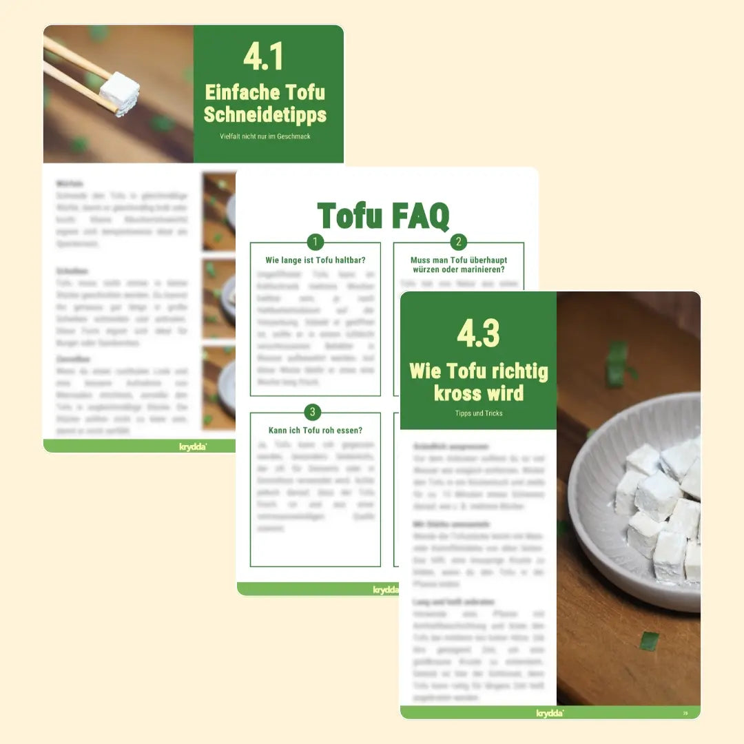 Du kannst mit krydda jede Tofu-Art zubereiten. Es ist lediglich wichtig, dass der Tofu-Block 180 g – 200 g schwer ist.